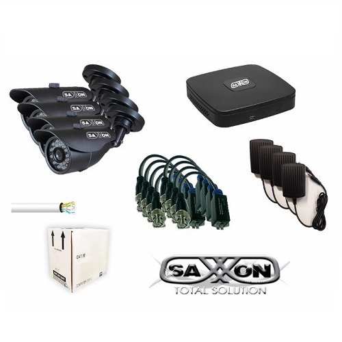 SAXXON SAX04BF8KITPaquete de 1 DVR 4 canales/ 4 cámaras 720p/ 4 fuentes/ 1 bobina de 305mts /8 transceptores.
